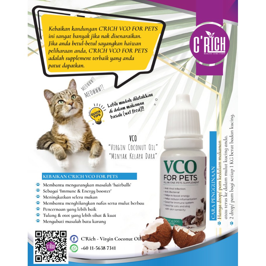 Kebaikan Minyak Kelapa Dara Untuk Lelaki dan Perempuan 7. Cukup memberikan ½ sendok teh minyak kelapa murni setiap 5 kg BB setiap hari pada anjing atau kucing anda maka banyak manfaat yang akan Anjing dan kucing Anda rasakan. SuperFood Produk Khas Untuk Kucing Vitamin SuperFood sangat sesuai untuk kucing yang kurus dan perlu gemuk dengan cepat yang mempunyai masalah kutu kurap kulat penyakit sporo sakit mata demam cirit birit batuk selsema dan sebagainya.